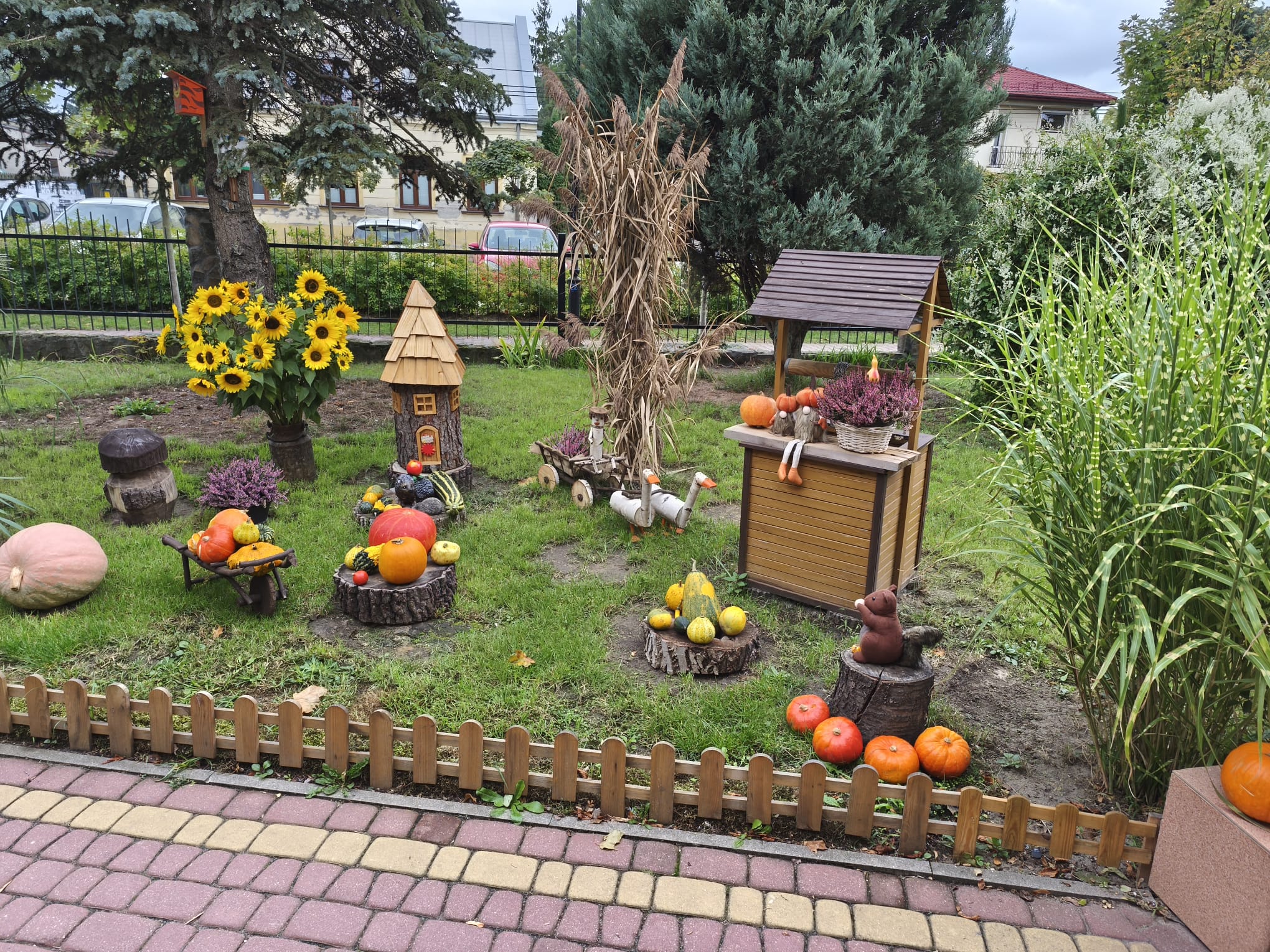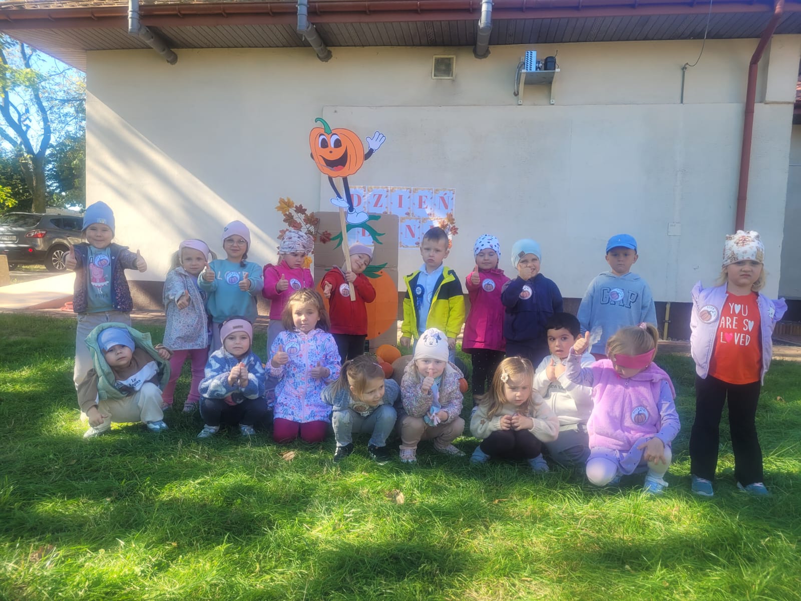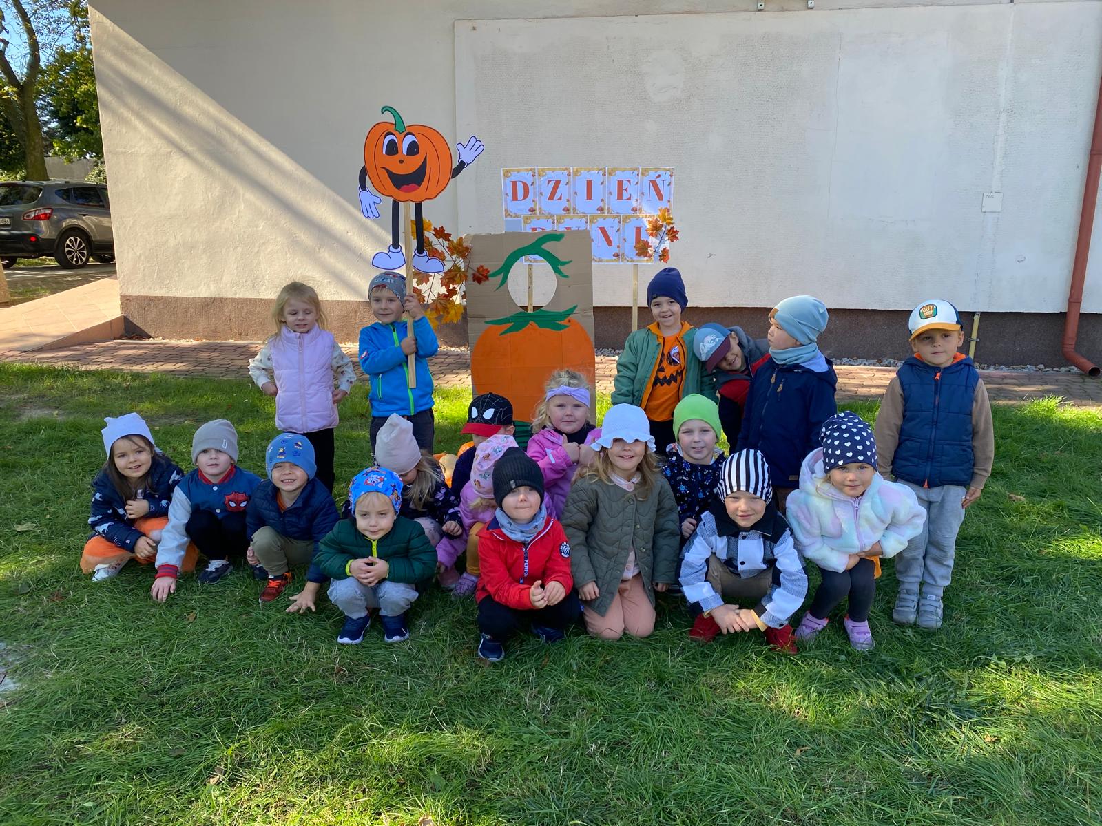 Dynie, które udało nam się zebrać, pięknie ozdobiły plac wokół przedszkola.