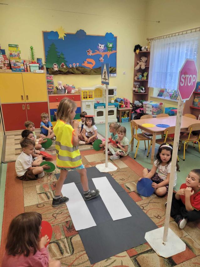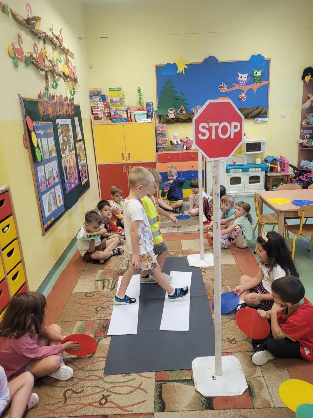 Przez skrzyżowanie do przedszkola-zapoznanie Sówek z przepisami ruchu drogowego
