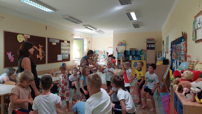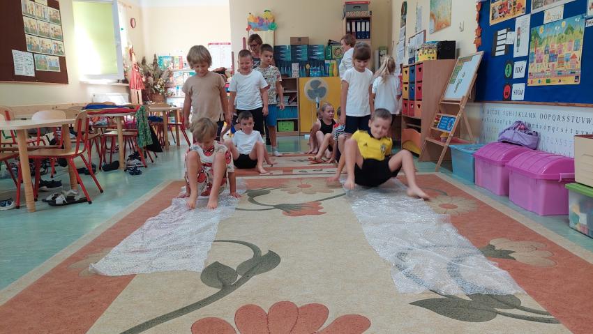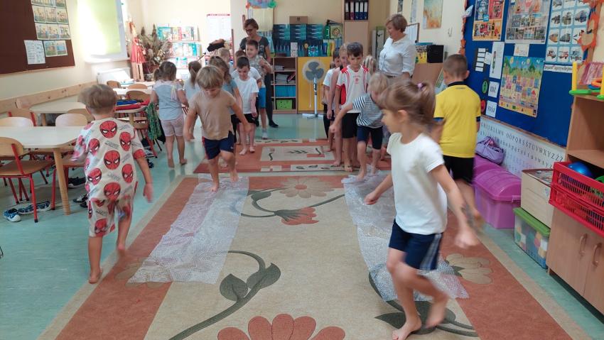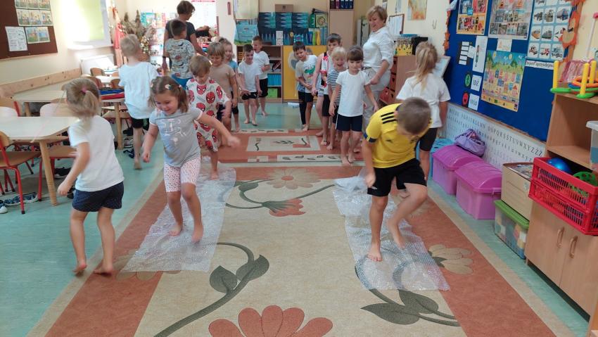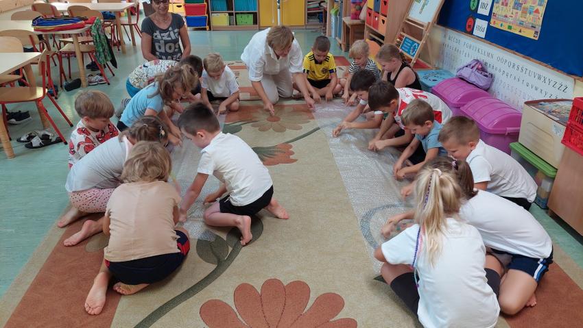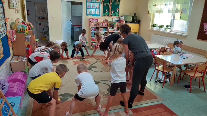 Zajęcia z ruchu rozwijającego wg metody W. Sherborn w grupie "Słoneczka"