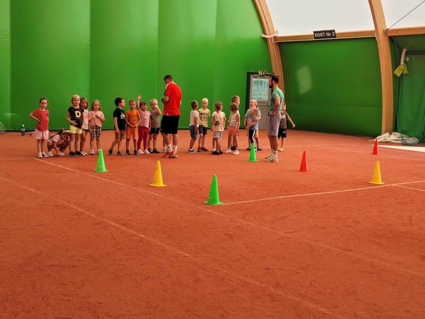 Motylki na lekcji tenisa