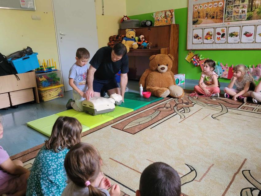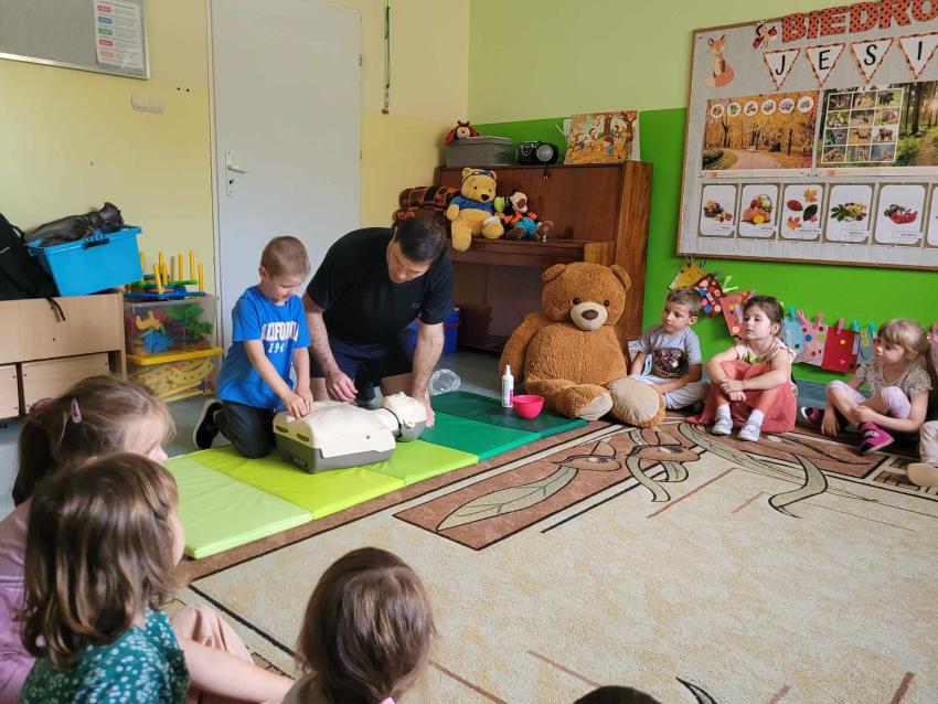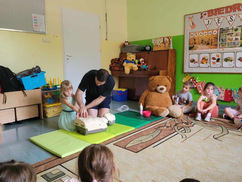 Warsztaty pierwszej pomocy z Misiem Edziem grupa Sówki