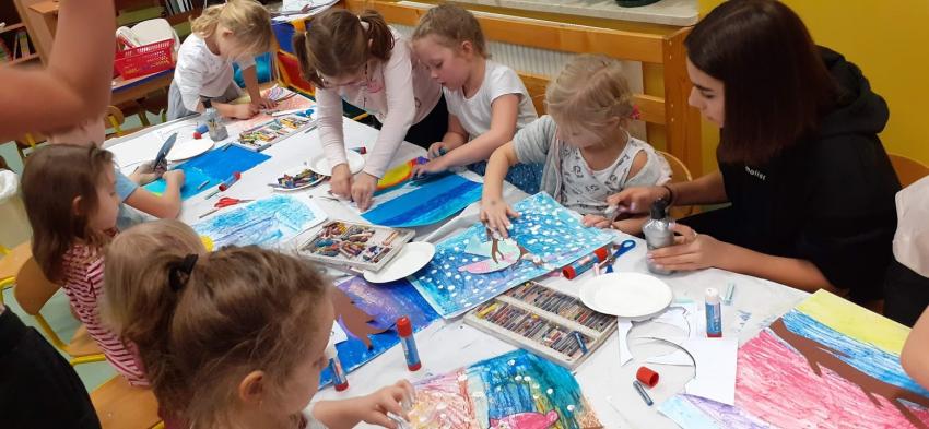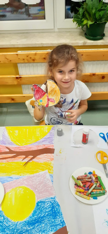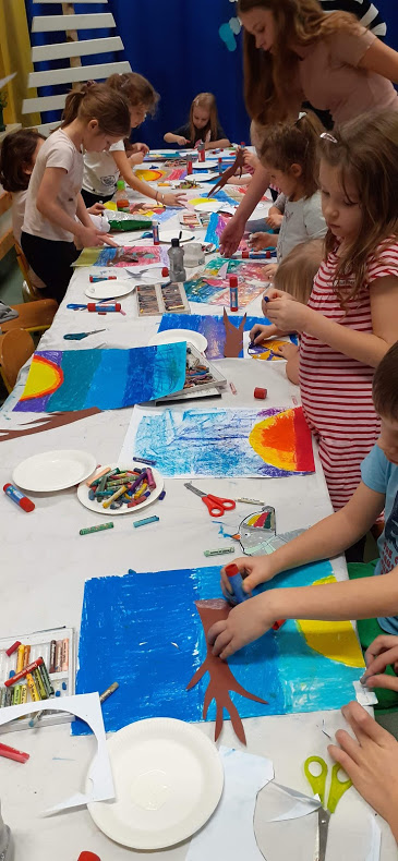 "Kolorowa, ptasia zima" - malowanie pastlami na kółku plastycznym