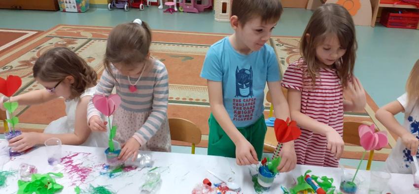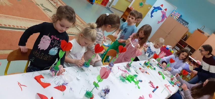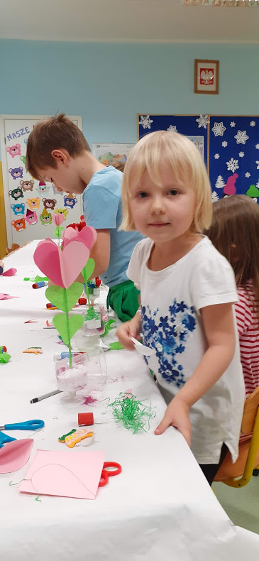 "Walentynkowe drzewko" - zajęcia plastyczno-techniczne na kółku plastycznym