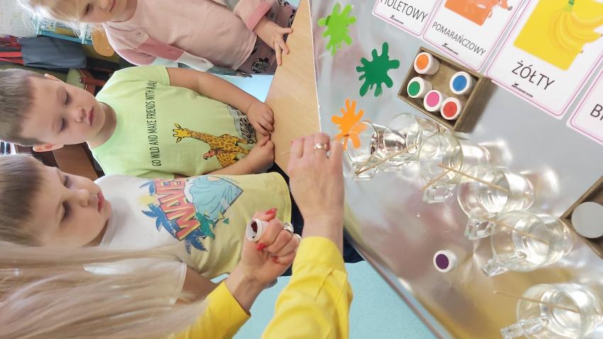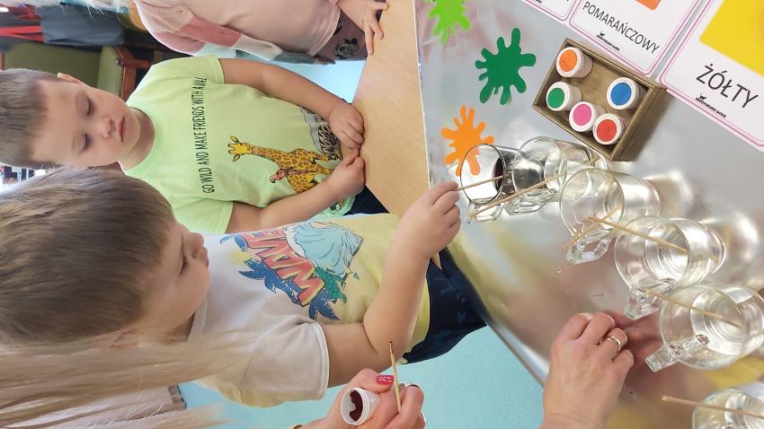 "Detektywi kolorów" - zabawa kolorami w grupie "Kotki"