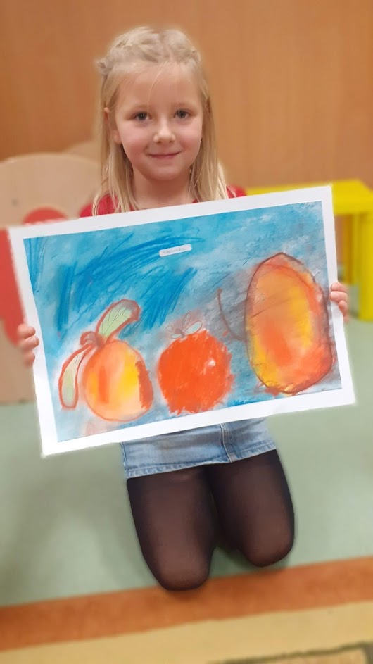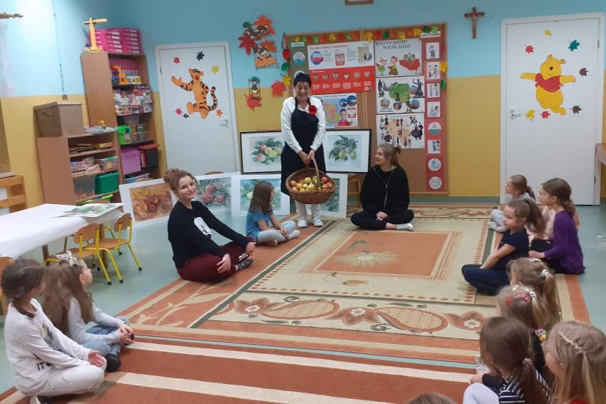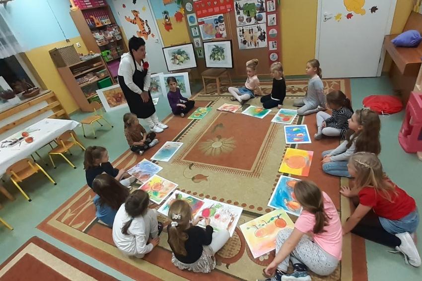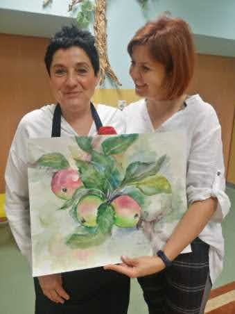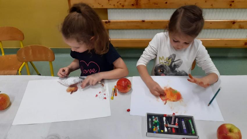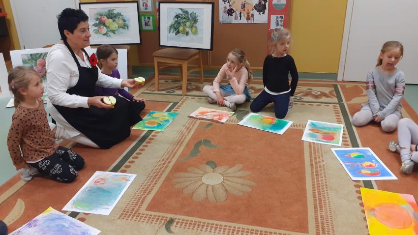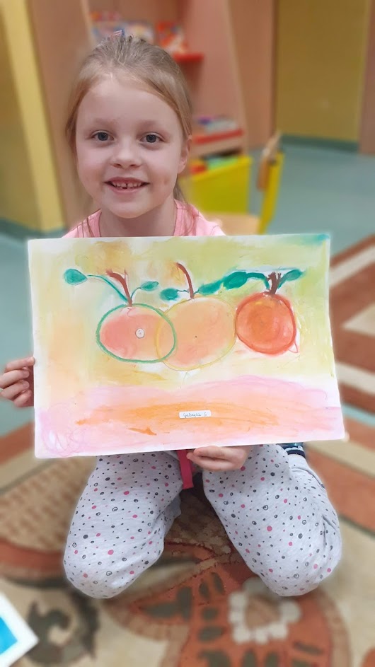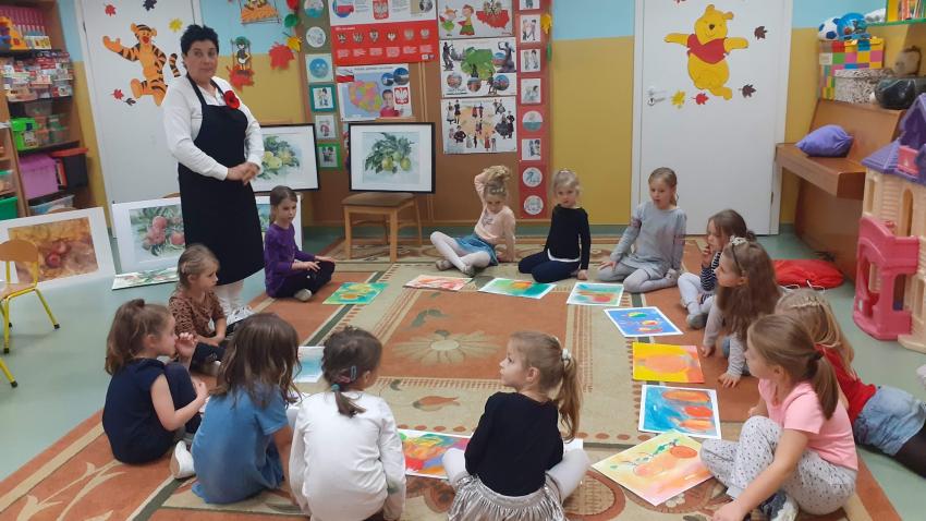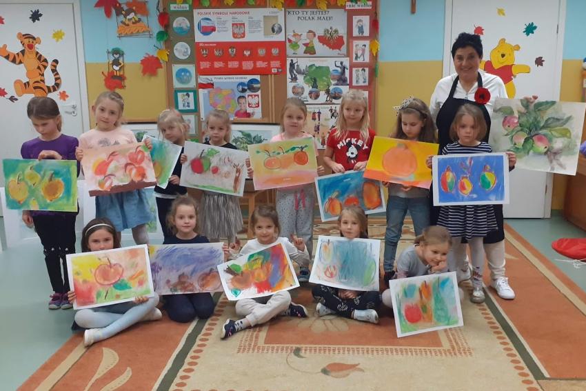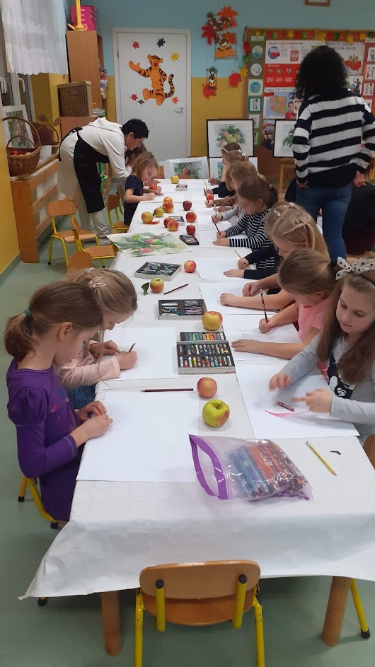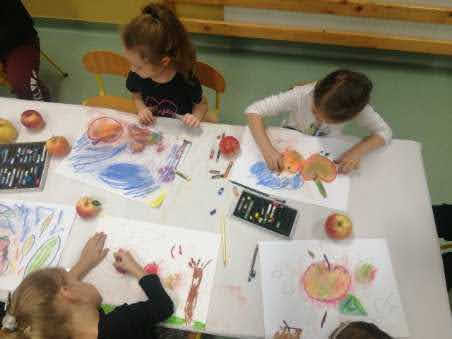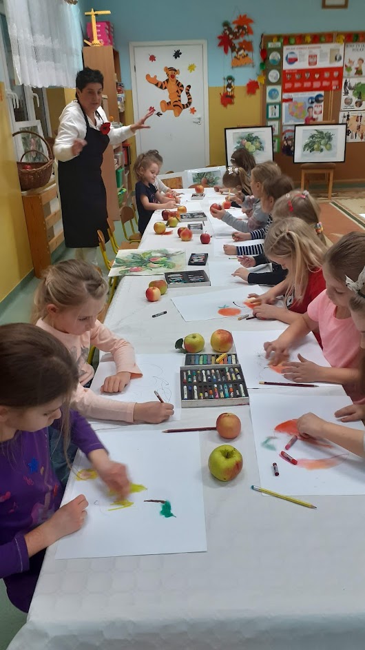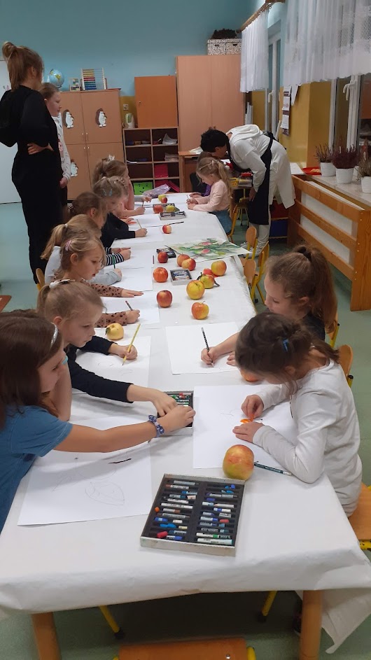 "Jabłka" - warsztaty plastyczne z artystką, malarką Panią Teresą Pietras. Kółko plastyczne.