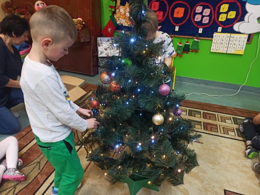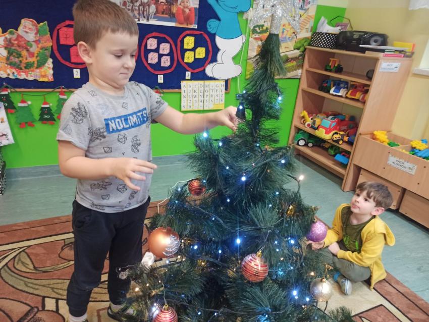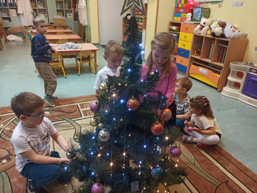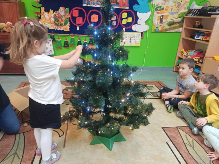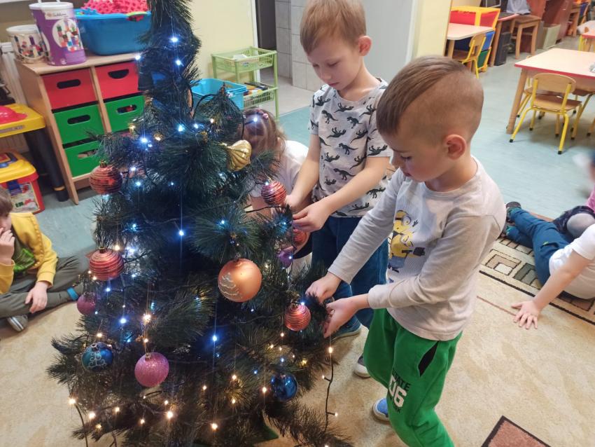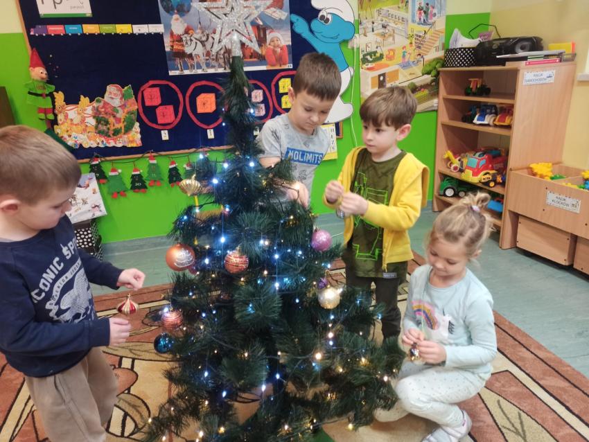 "Smerfy" ubierają choinkę