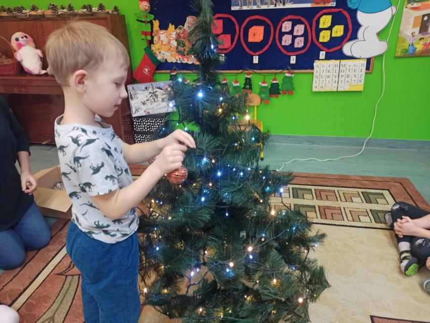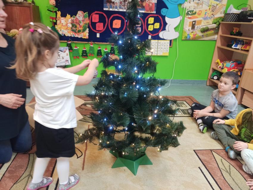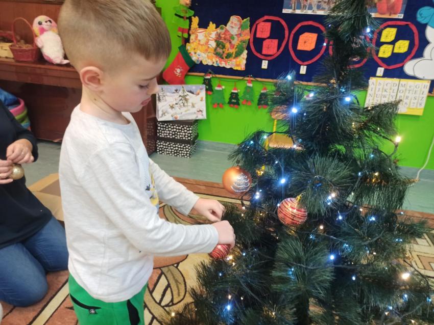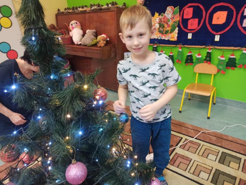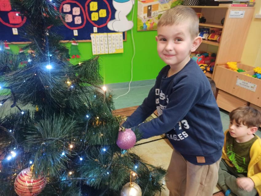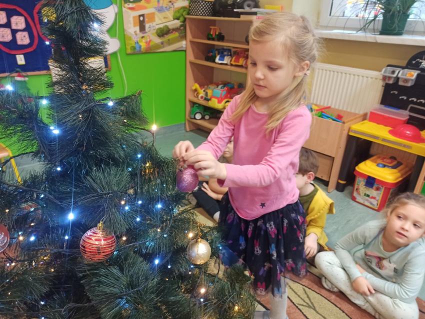 "Smerfy" ubierają choinkę