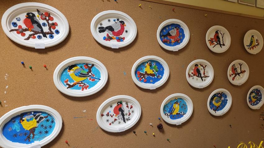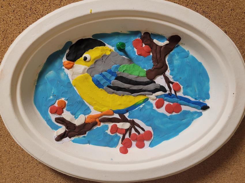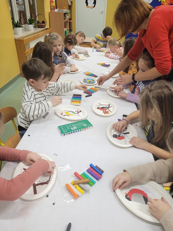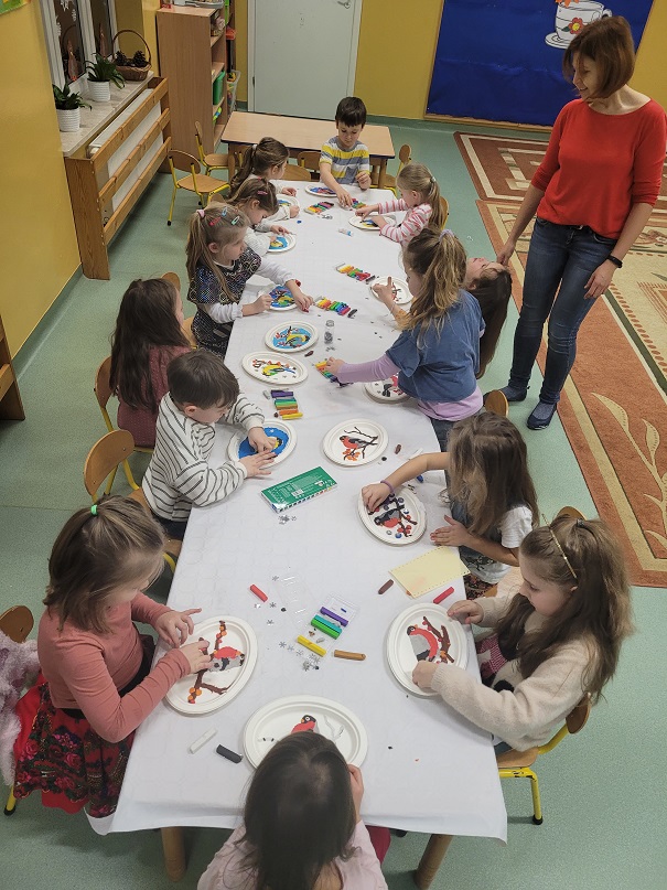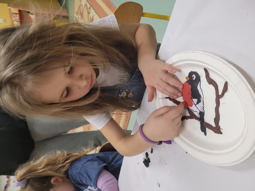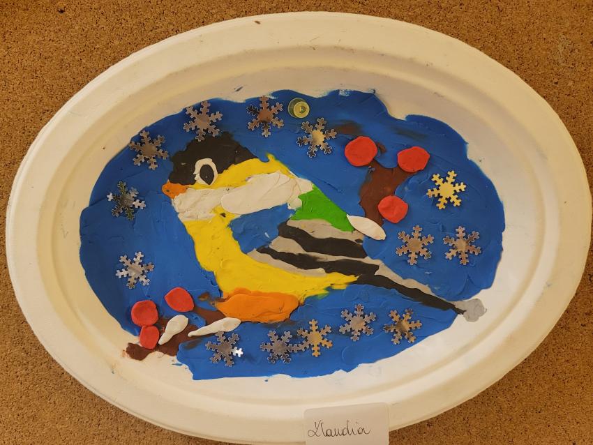 "Ptaki zimy" - wylepianka plastelinowa "Kółko plastyczne"