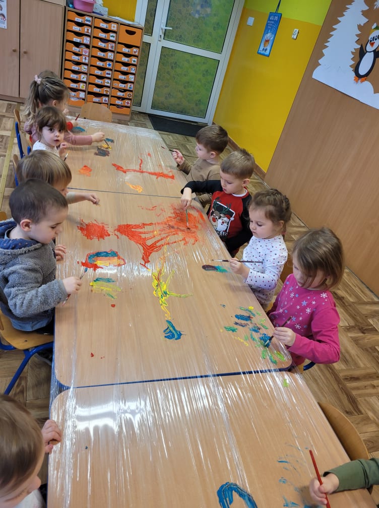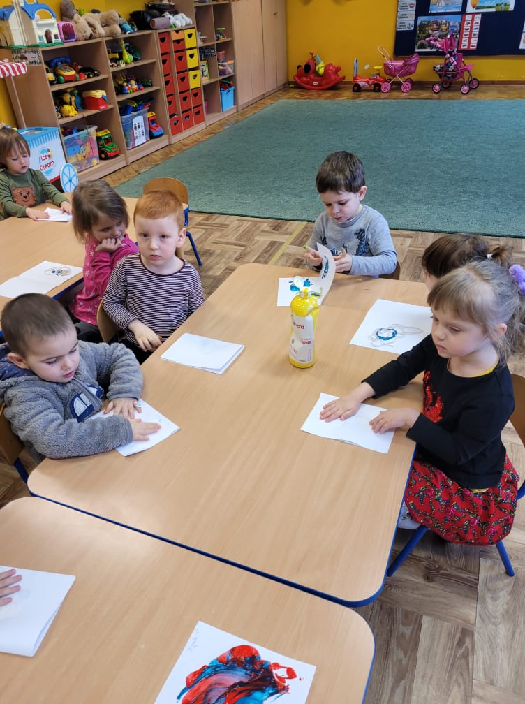 Zajęcia plastyczne w gr. "Sówki" i "Biedronki"