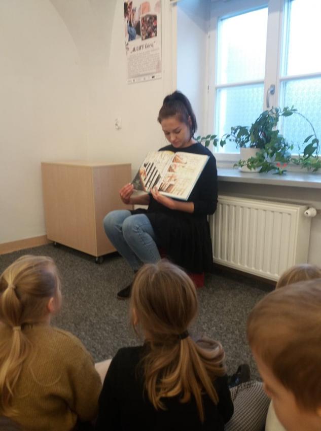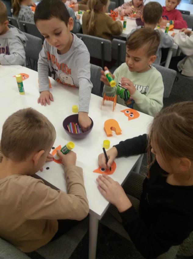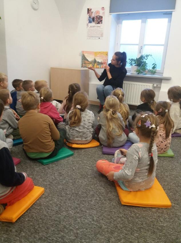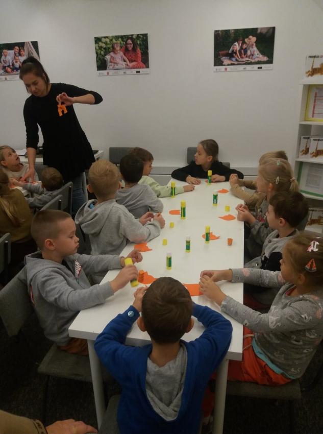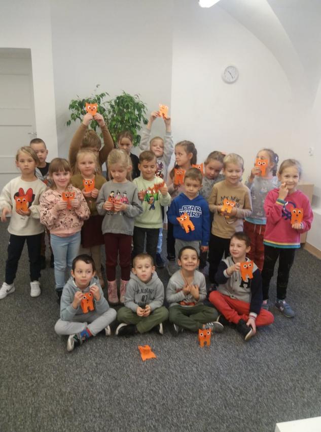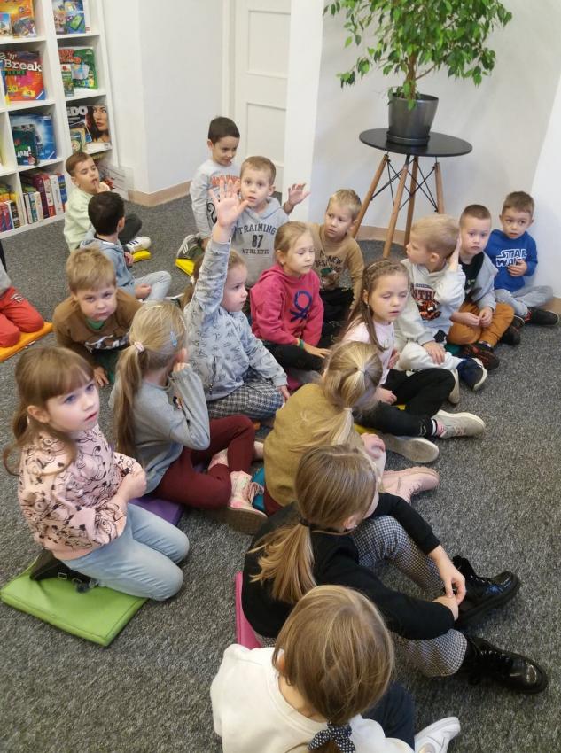 Grupa Kotki na zajęciach w bibliotece.