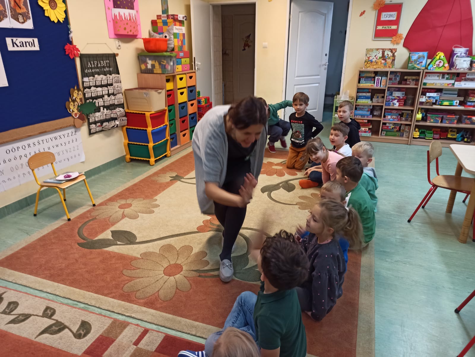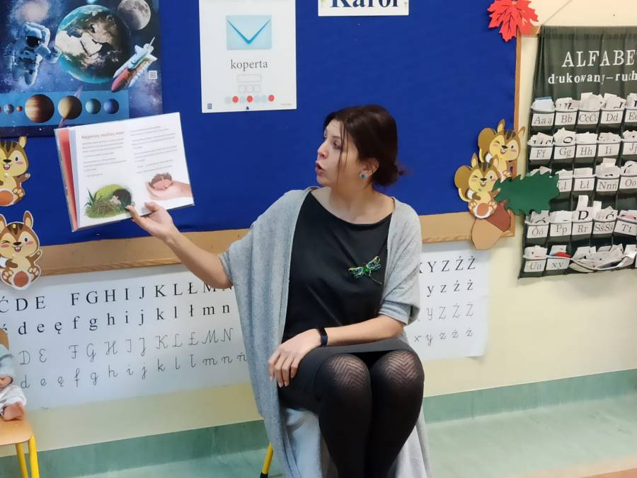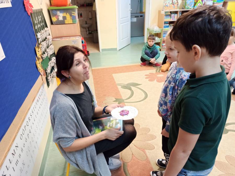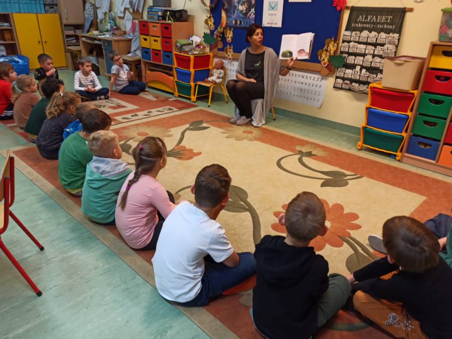 Pani dyrektor czyta "Smerfom" bajkę.