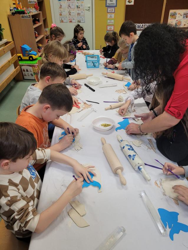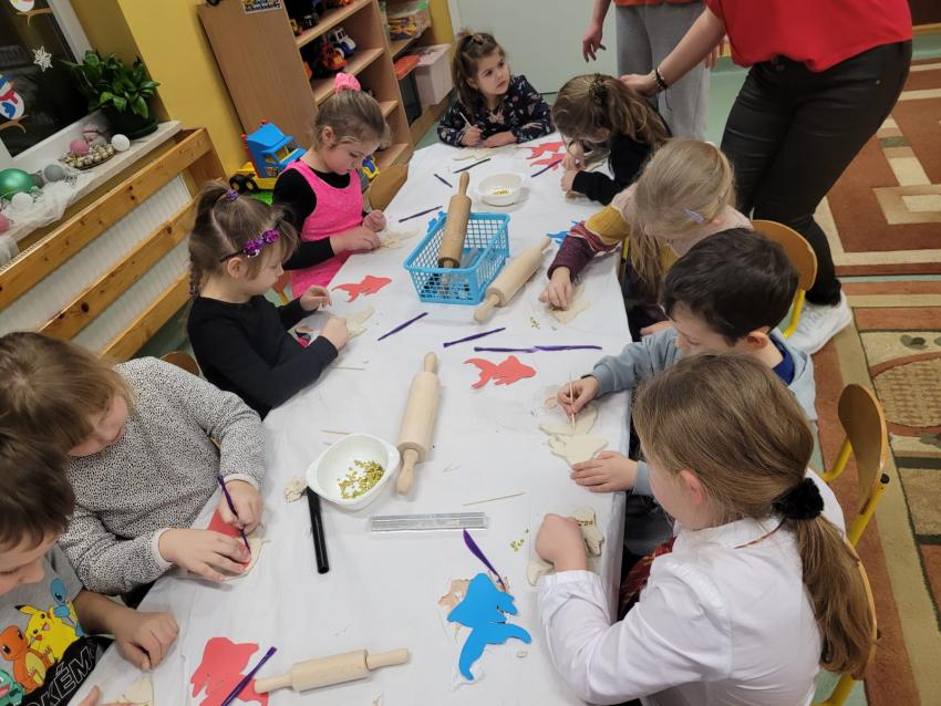 "Złota rybka" - lepienie z gliny na zajęciach kółka plastycznego