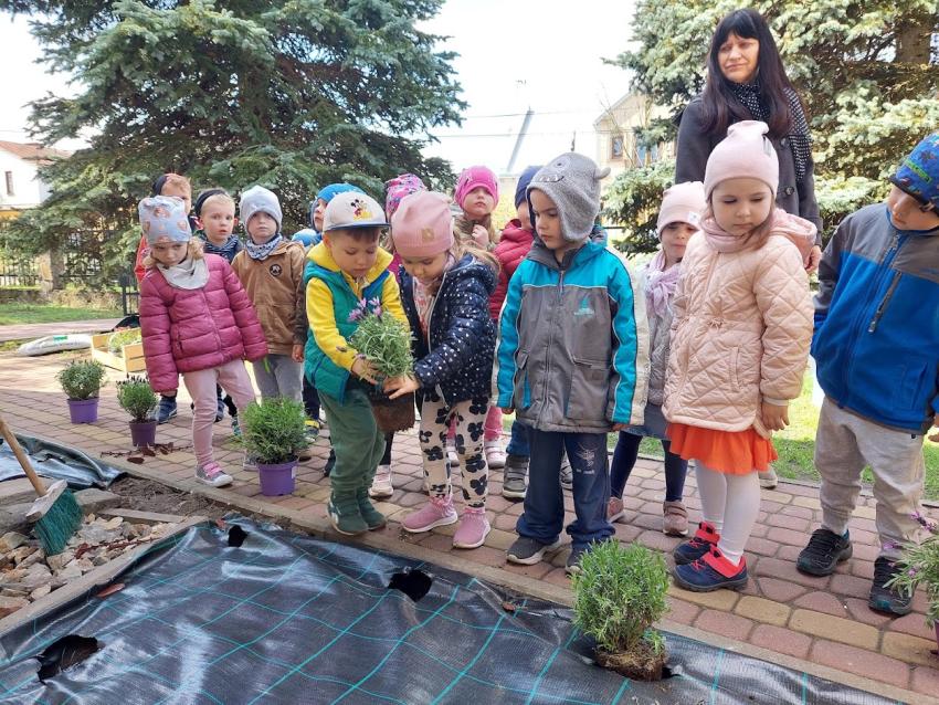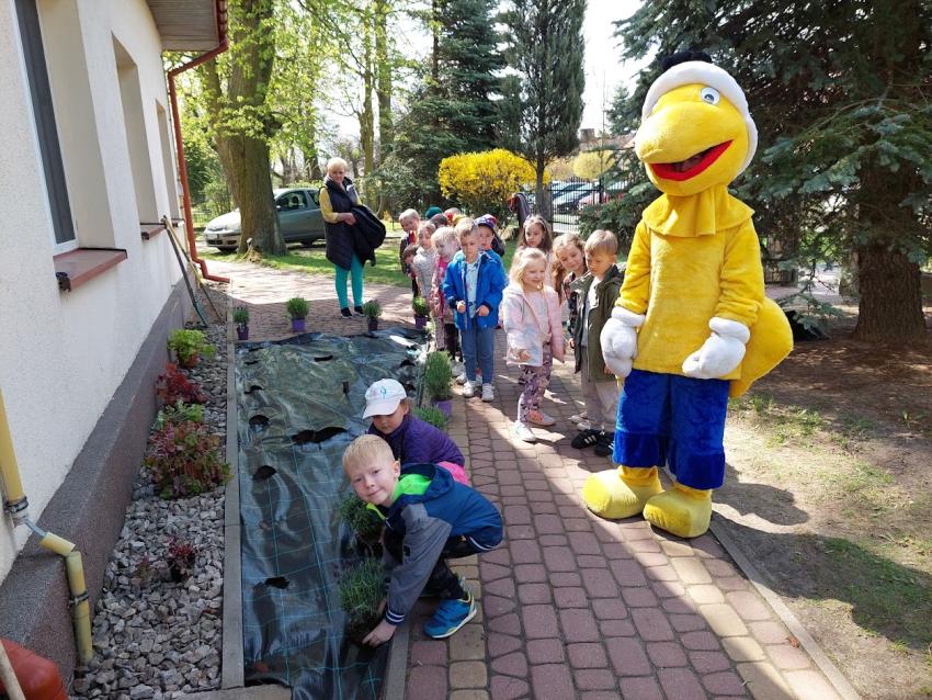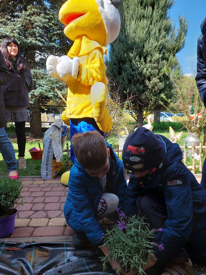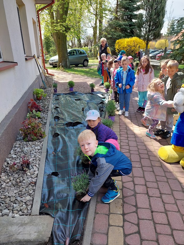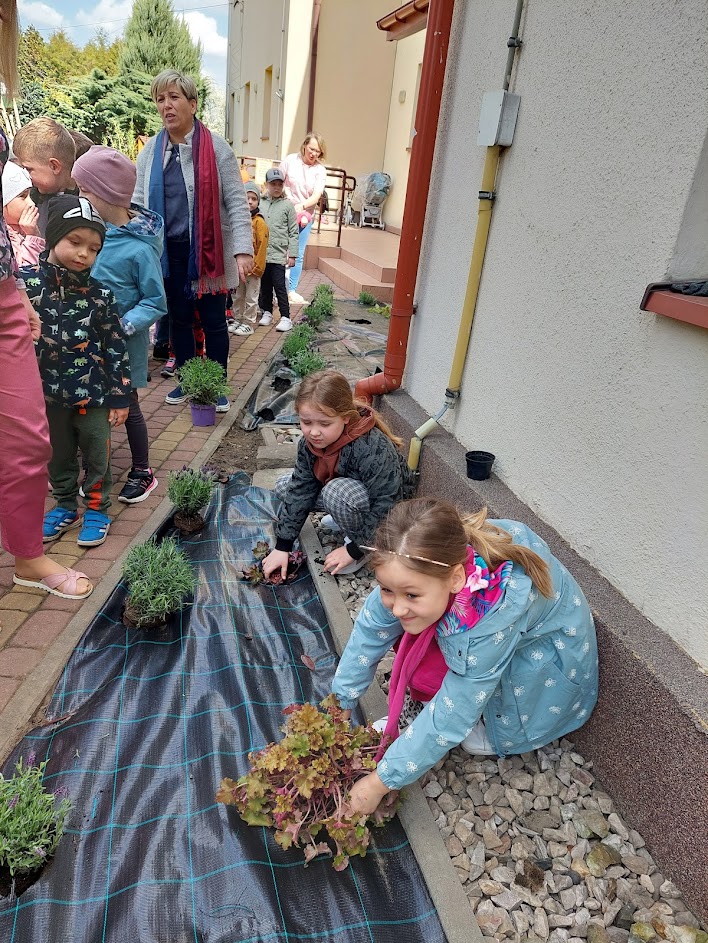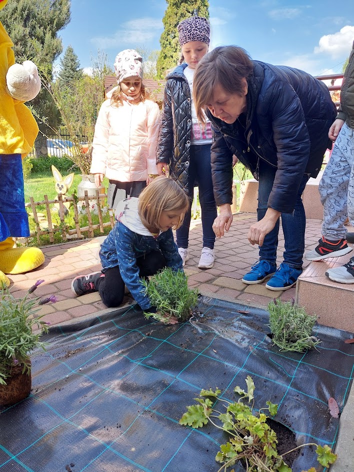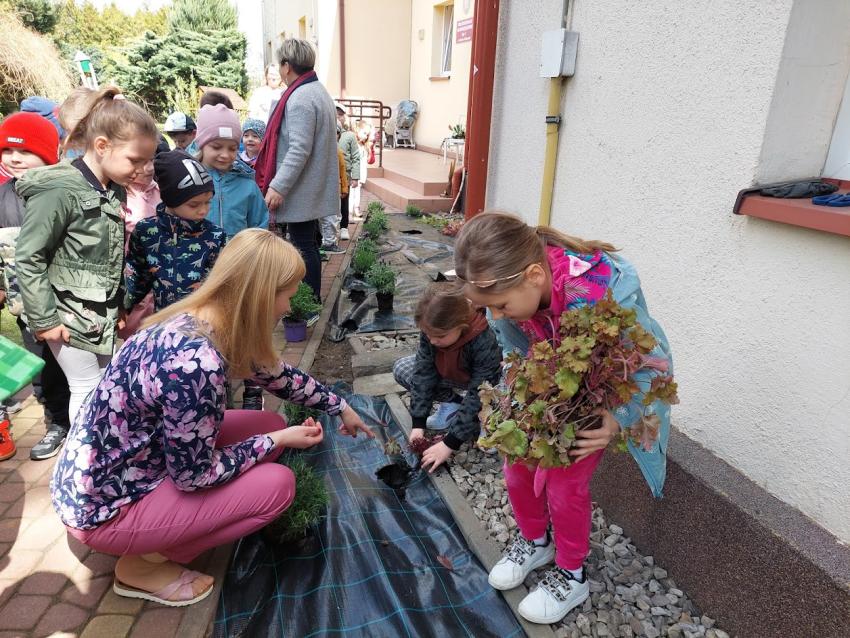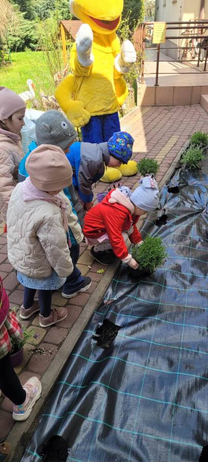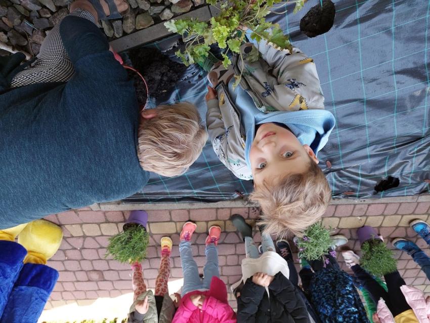 Wiosenne prace w ogródku przedszkolnym.
