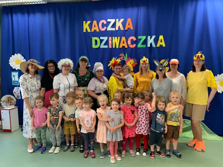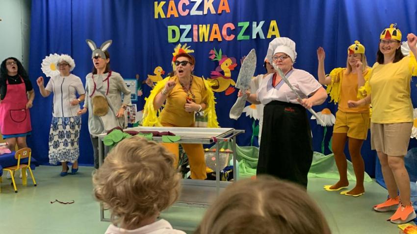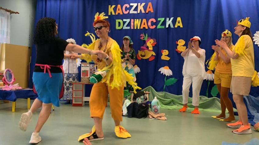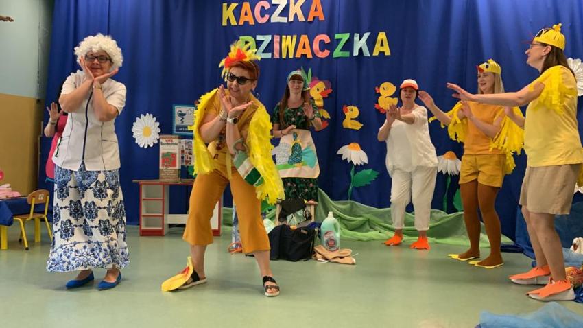 Dzień Dziecka -Kaczka dziwaczka -teatrzyk w wykonaniu pracowników przedszkola