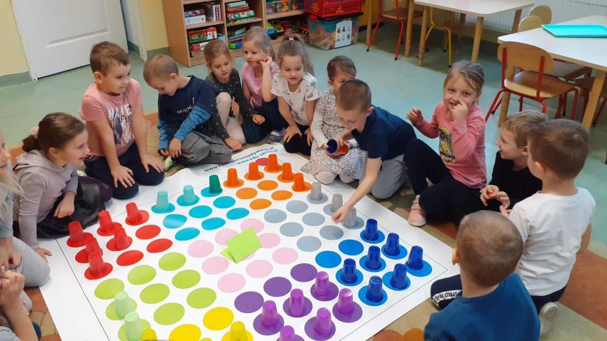 "Kodowanie na dywanie" - gra na deszczowe dni. Zajęcia matematyczne w grupie Tygrysków. +10 Zobacz zdjęcia